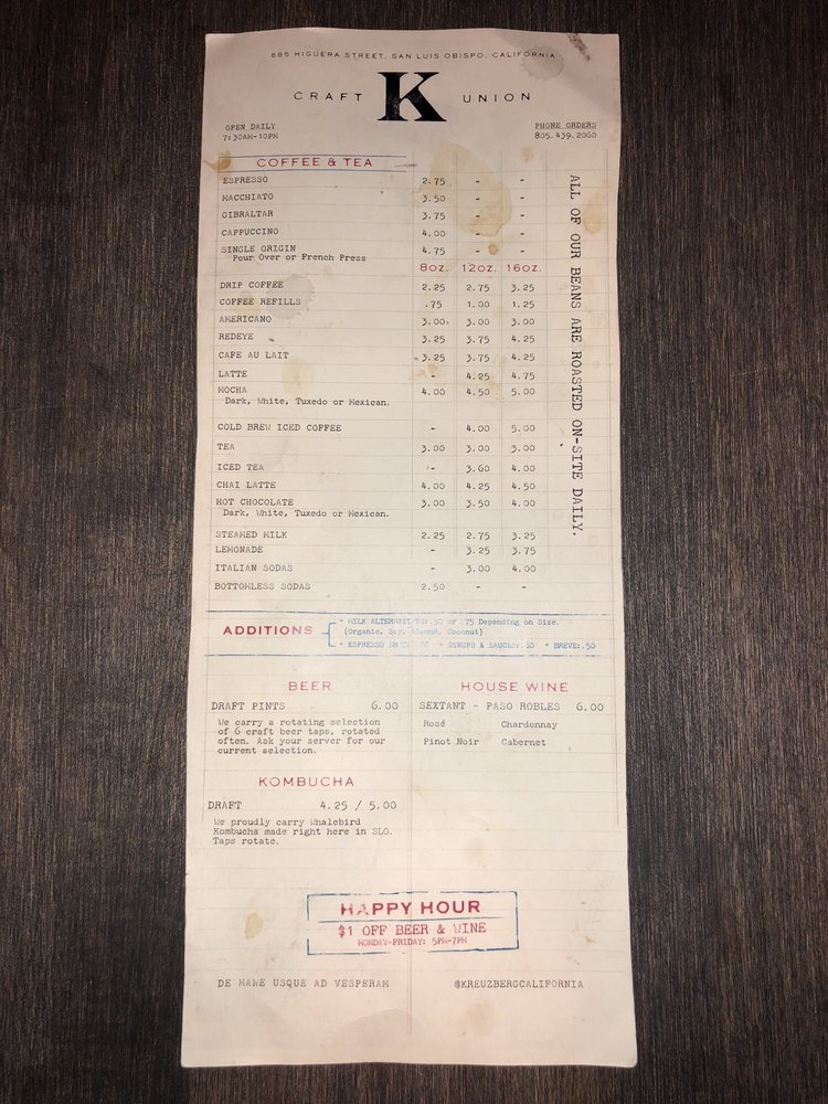 Kreuzberg California, a trendy and hip Breakfast & Brunch spot in San Luis Obispo, offers a menu filled with delectable options. From their renowned Breakfast Burritos to their unique Espresso Bar selections, there is something for everyone. Customers rave about the delicious Vanilla Latte and the mouth-watering acai bowl. The cozy atmosphere and ample seating make it a perfect spot for studying or catching up with friends. With a variety of vegan options and plastic-free packaging, Kreuzberg California is not only delicious but environmentally conscious. Don't forget to try their signature California omelette and hot and crispy tater tots. Whether you're looking for a quick coffee break or a leisurely brunch, Kreuzberg California is the place to be.
